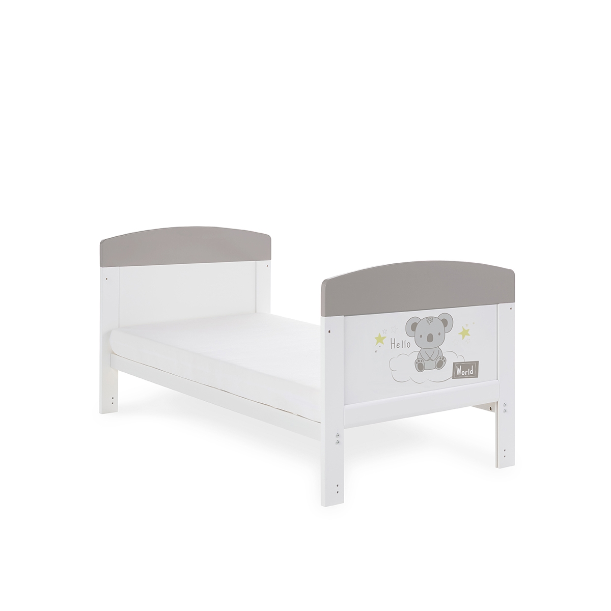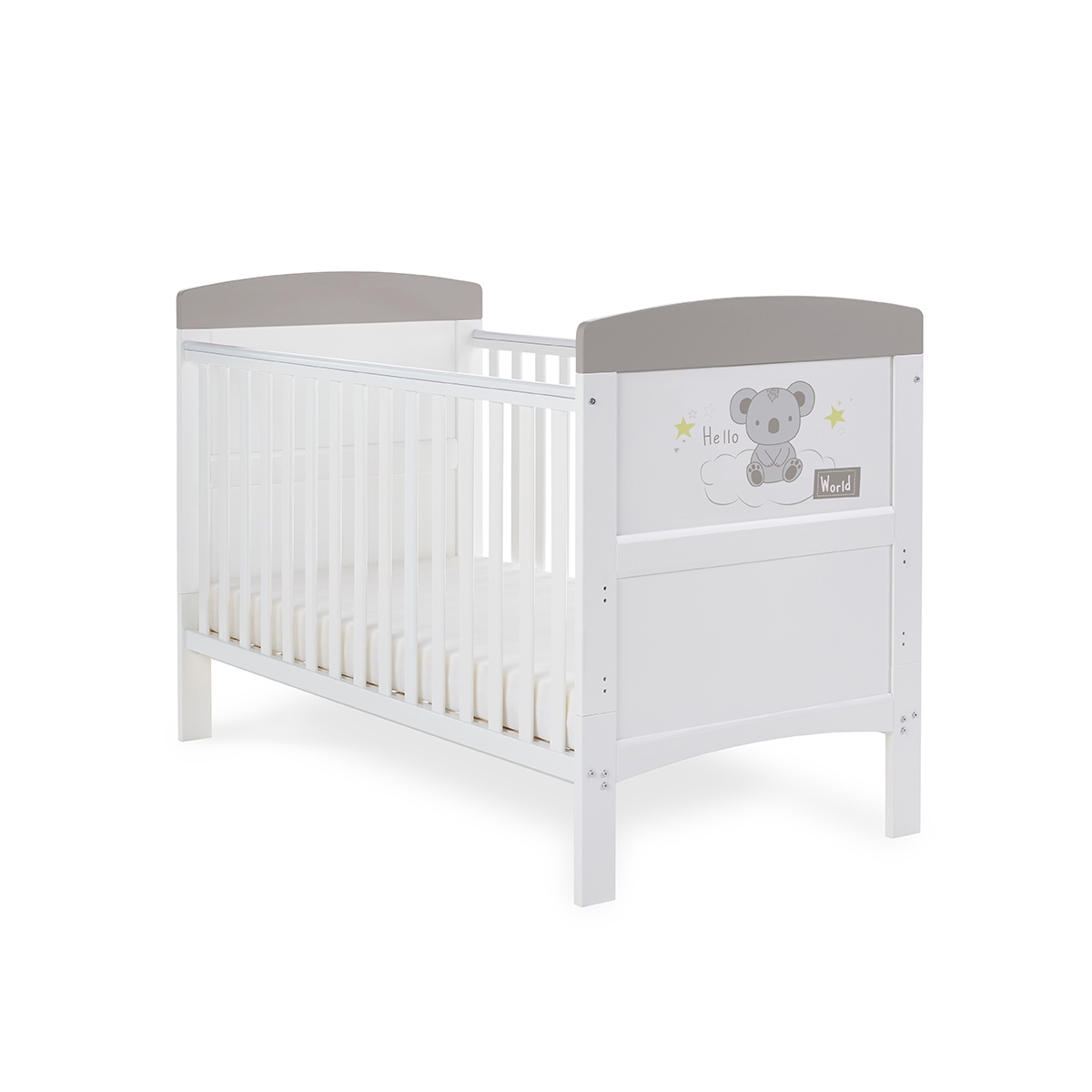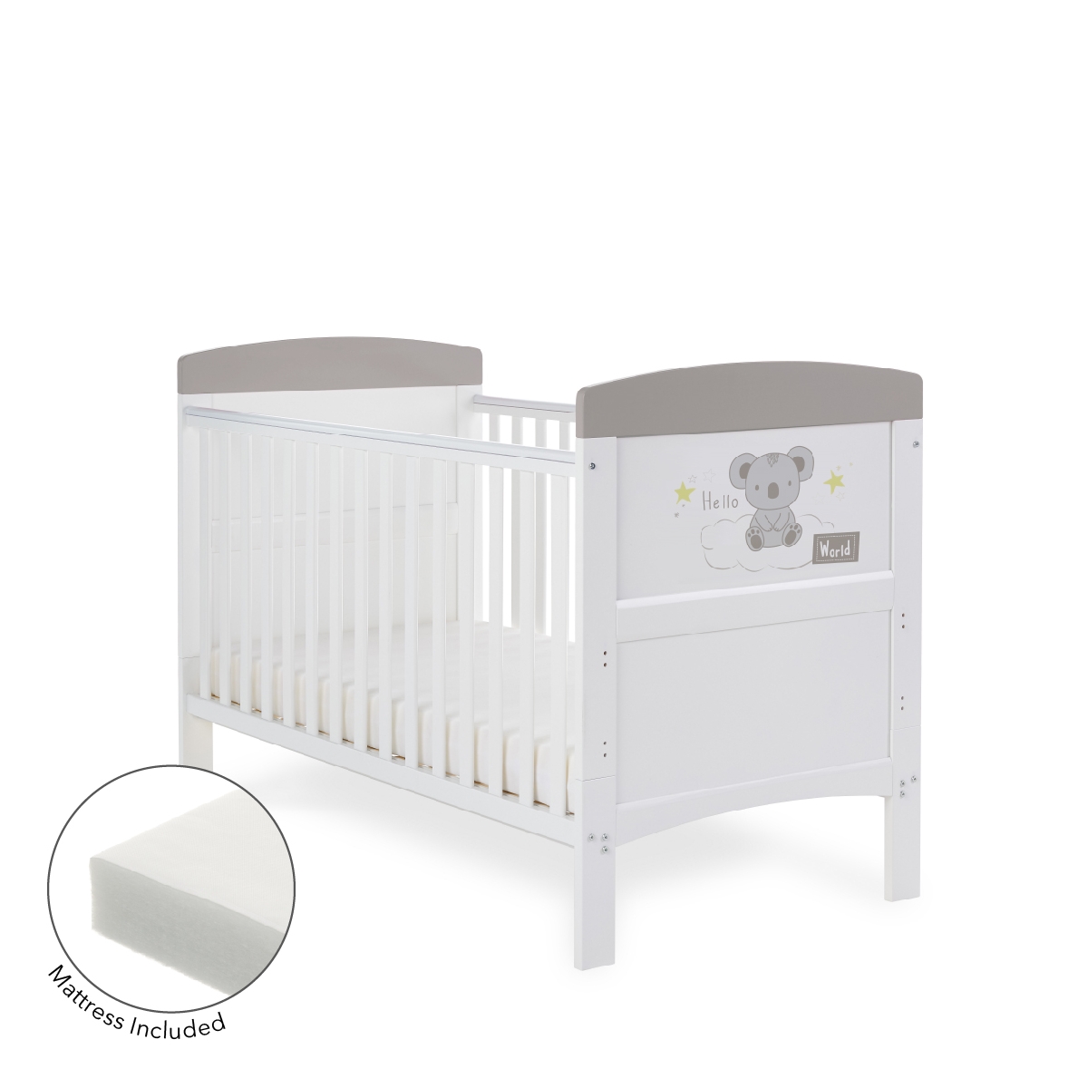 Obaby Grace Inspire Cot Bed & Fibre Mattress-Hello World Koala - GreyWarning: Last items in stock!