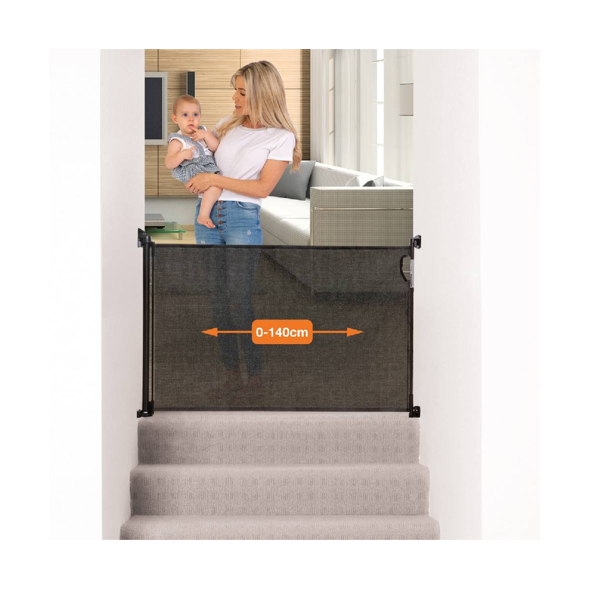 The Dreambaby retractable gate provides a barrier for variopus widths and cleverly retracts back into itself when not in use. With a clip on/clip off release, you can move the gate from one location to another care of two sets of mountaining brackets.