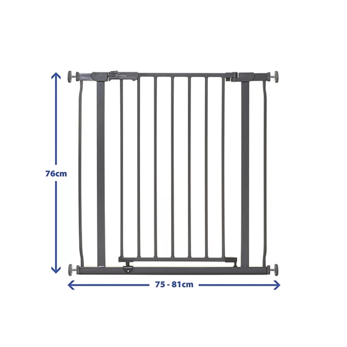 The Dreambaby Ava security gate will fit any gap of 75-81cm. This pressure-mounted gate witrh 2-way opening and smart stay-open feature, is simple to install and use. This security gate is lightweight yet sturdy. Great for pets too.