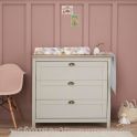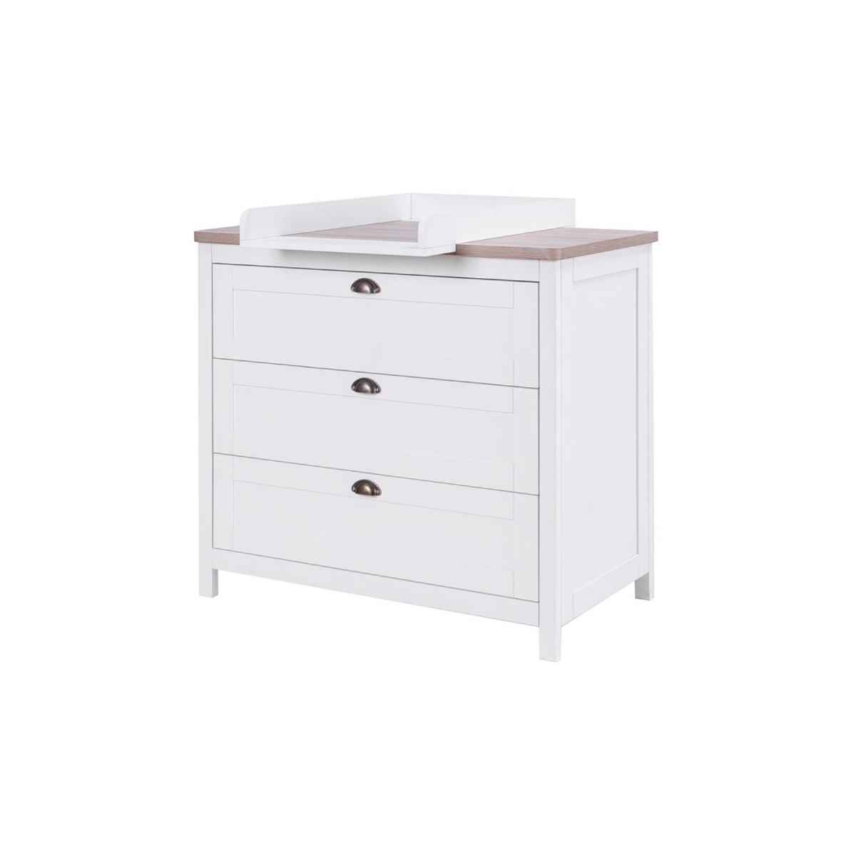 The Tutti Bambini Verona Chest Changer is beautifully crafted storage unit with spacious 3 full length drawers finished of lovely antique brass handles. High quality table top with elegant oak wood surface adds a nice contrast to Verona's stylish clean lined design. The chest also comes with practical detachable standard sized baby changer suitable to use from birth up to approximately 15kg. This piece of furniture is made of finest New Zealand Pine and perfectly coordinates with other Verona furniture range.