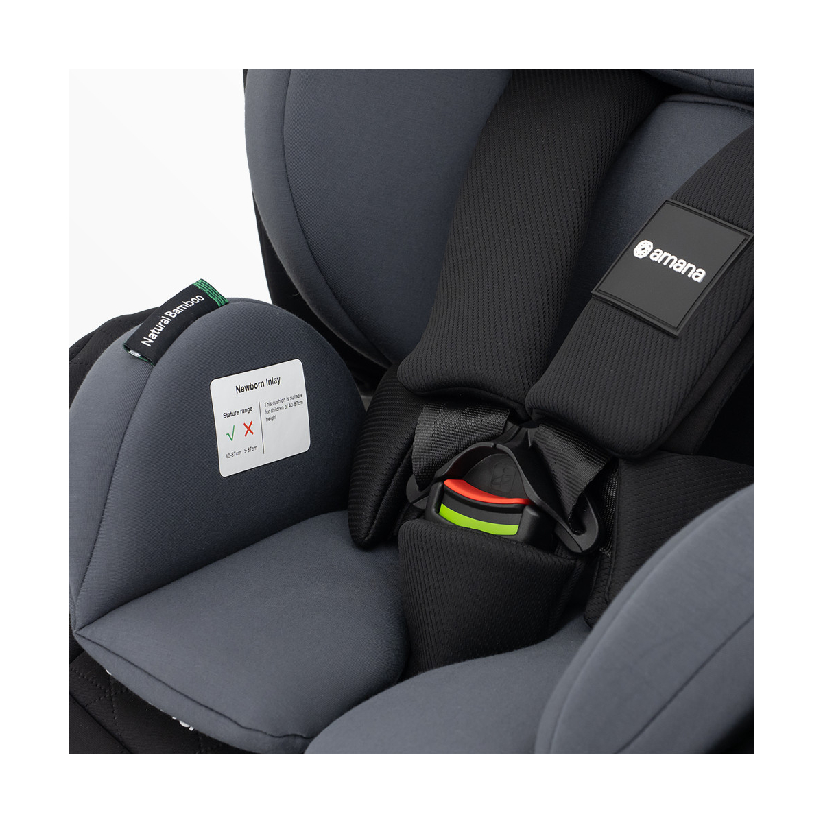 The ISOFIX attachment system ensures a secure connection to your vehicle, simplifying installation and providing peace of mind. With its soft and durable fabrics, including the Amana Signature pattern, your child will enjoy comfort and elegance during long rides. The bamboo newborn insert and adjustable headrest and harness system cater to your child's comfort and growth.