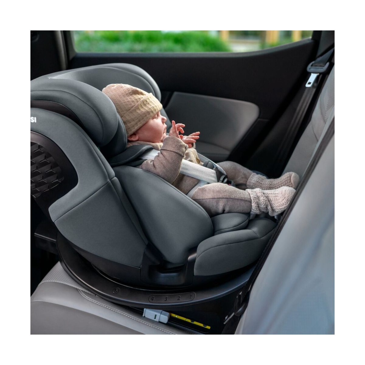 It can be used from birth with the removable Newborn inlay, and from there, it grows with them all the way up to 12 years old (150 cm). The convenient integrated FlexiSpin 360° rotating seat makes getting them in and out of the car a whole lot easier.