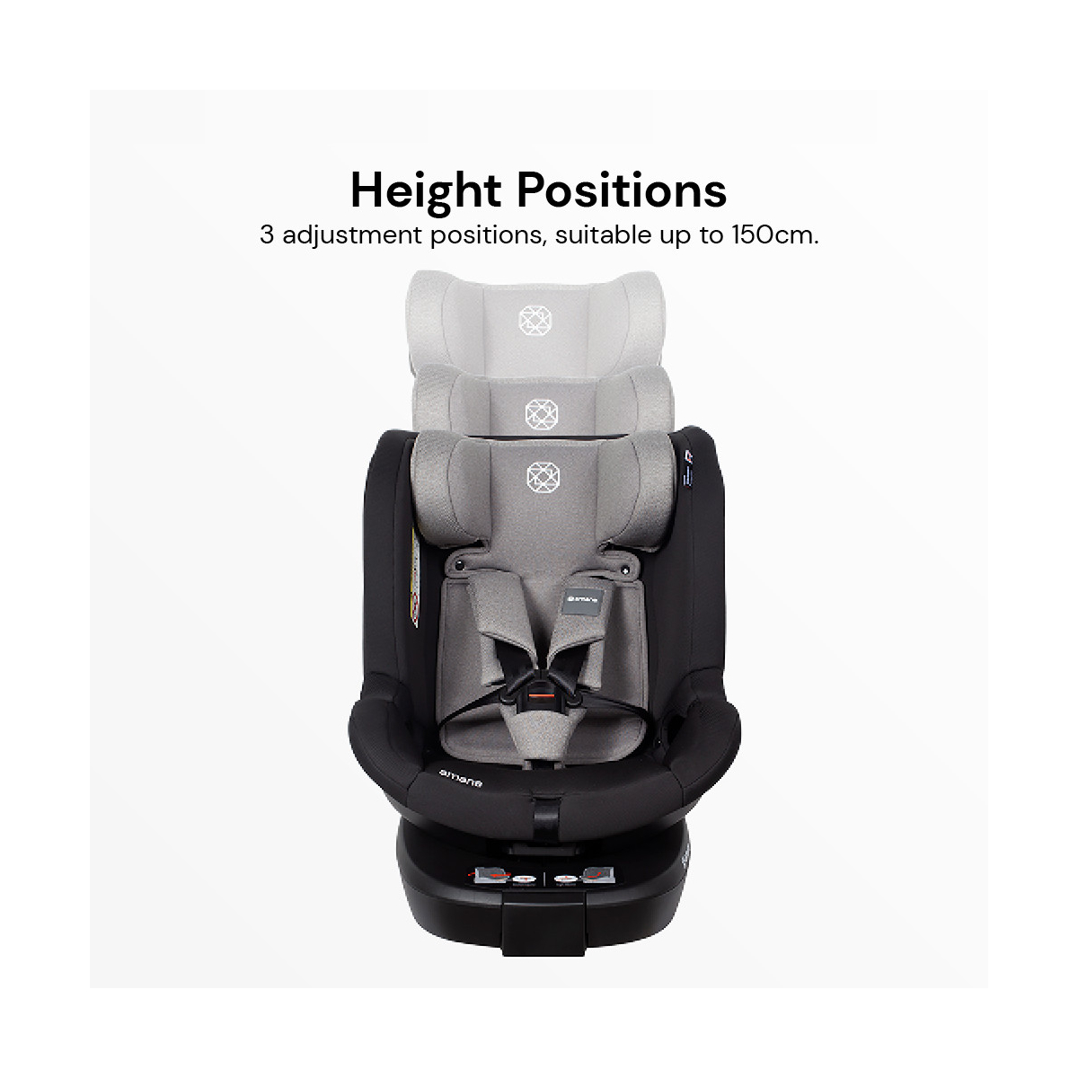 Amana Siena Twist 360 Spin i-Size Group 0+/1/2/3 Car Seat - Pebble Grey (Exclusive to Kiddies Kingdom) (Bounty M)