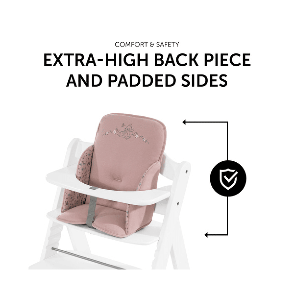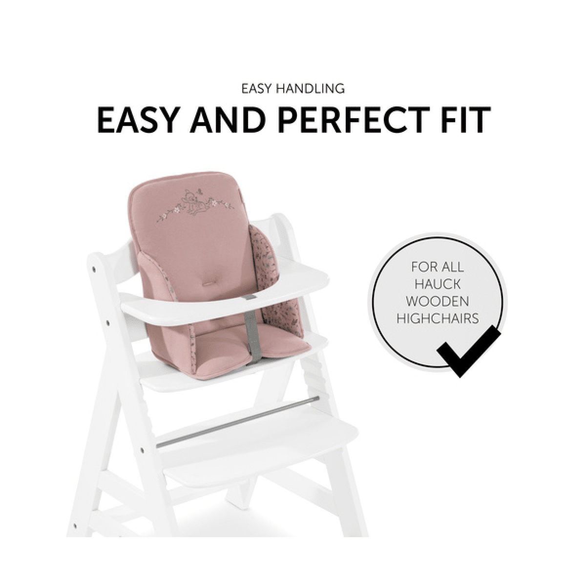 Thanks to the anti-slip coating on the underside, the high-quality seat reducer offers safety and does not slip even when having fun and playing with your child. It is compatible with both of the strap systems supplied with the hauck wooden high chairs.