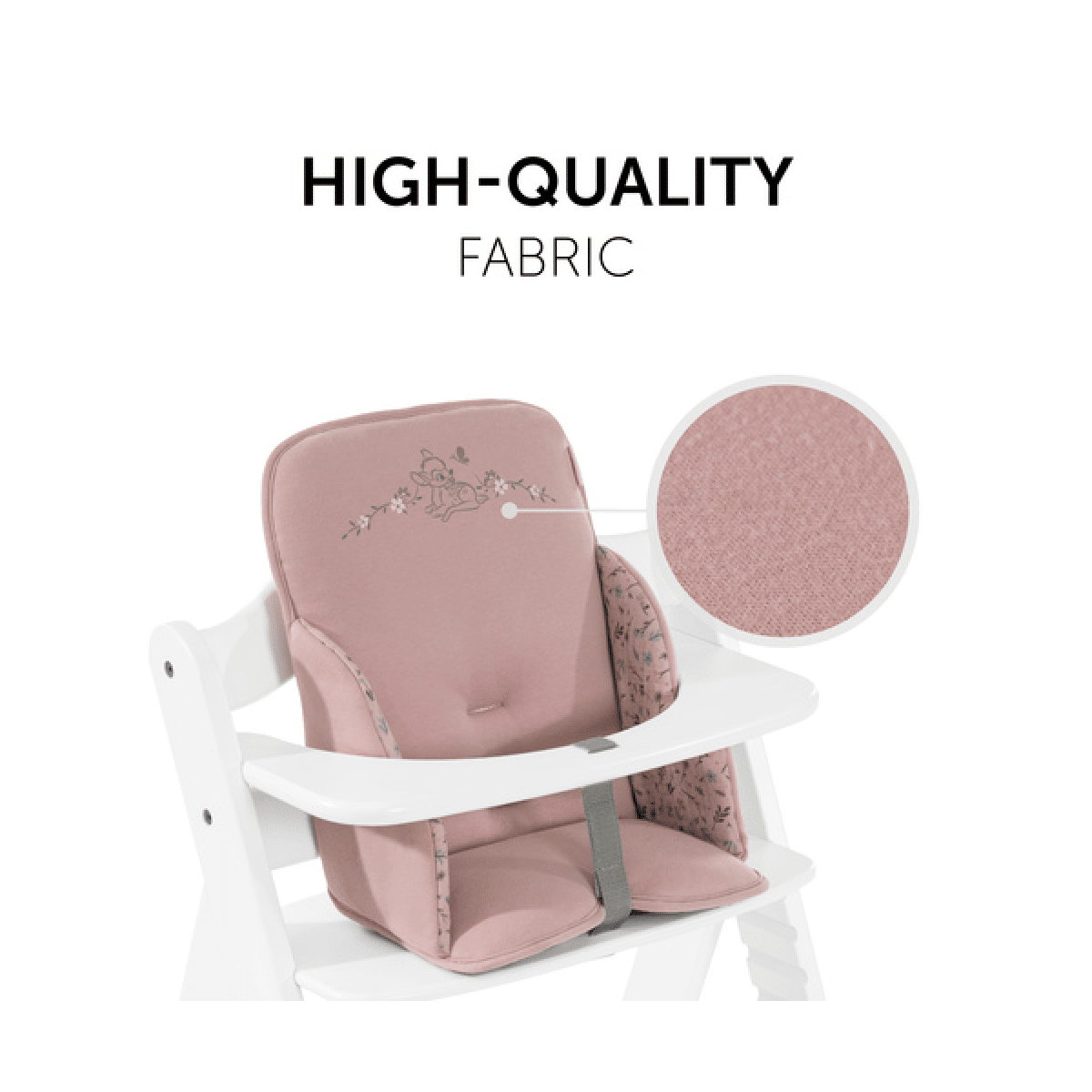 The seat reducer made of high-quality jersey fabric is particularly gentle on your baby's skin. The cotton fabric is soft, breathable and moisture-regulating, so sitting in the high chair is comfortable for your child even on warm days.