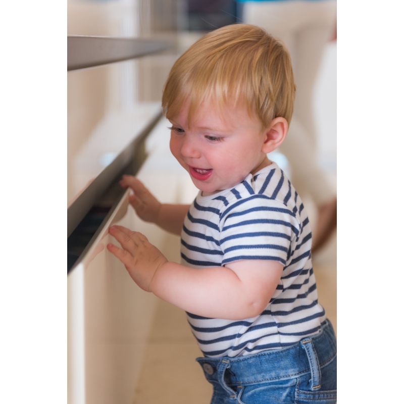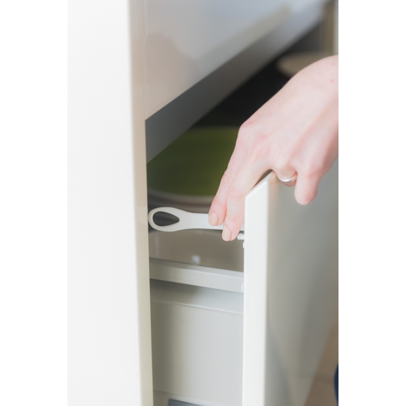 Hidden out of sight and designed particularly for lower drawers and top drawers and cupboards where there is no overhanging worktop. It's a quick, hassle-free fit using adhesive - no screws, no tools, no need to dismantle cupboards and drawers!