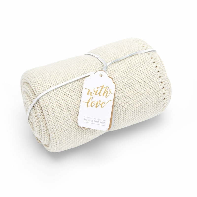 The Little Green Sheep Organic Knitted Cellular Baby Blanket-Linen