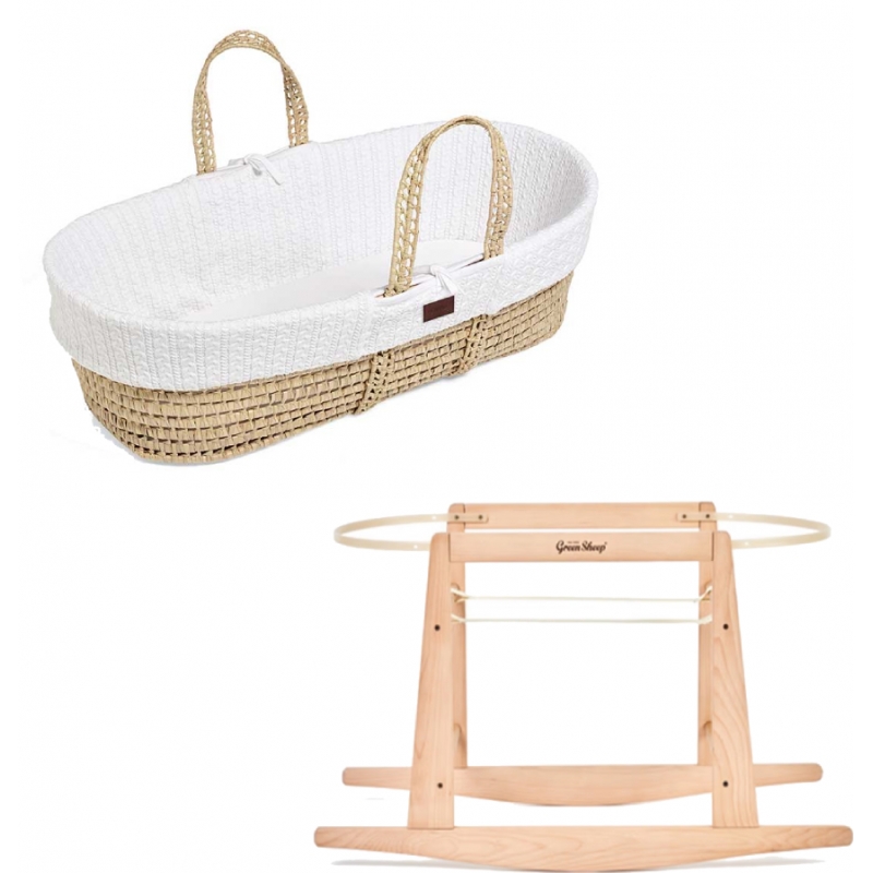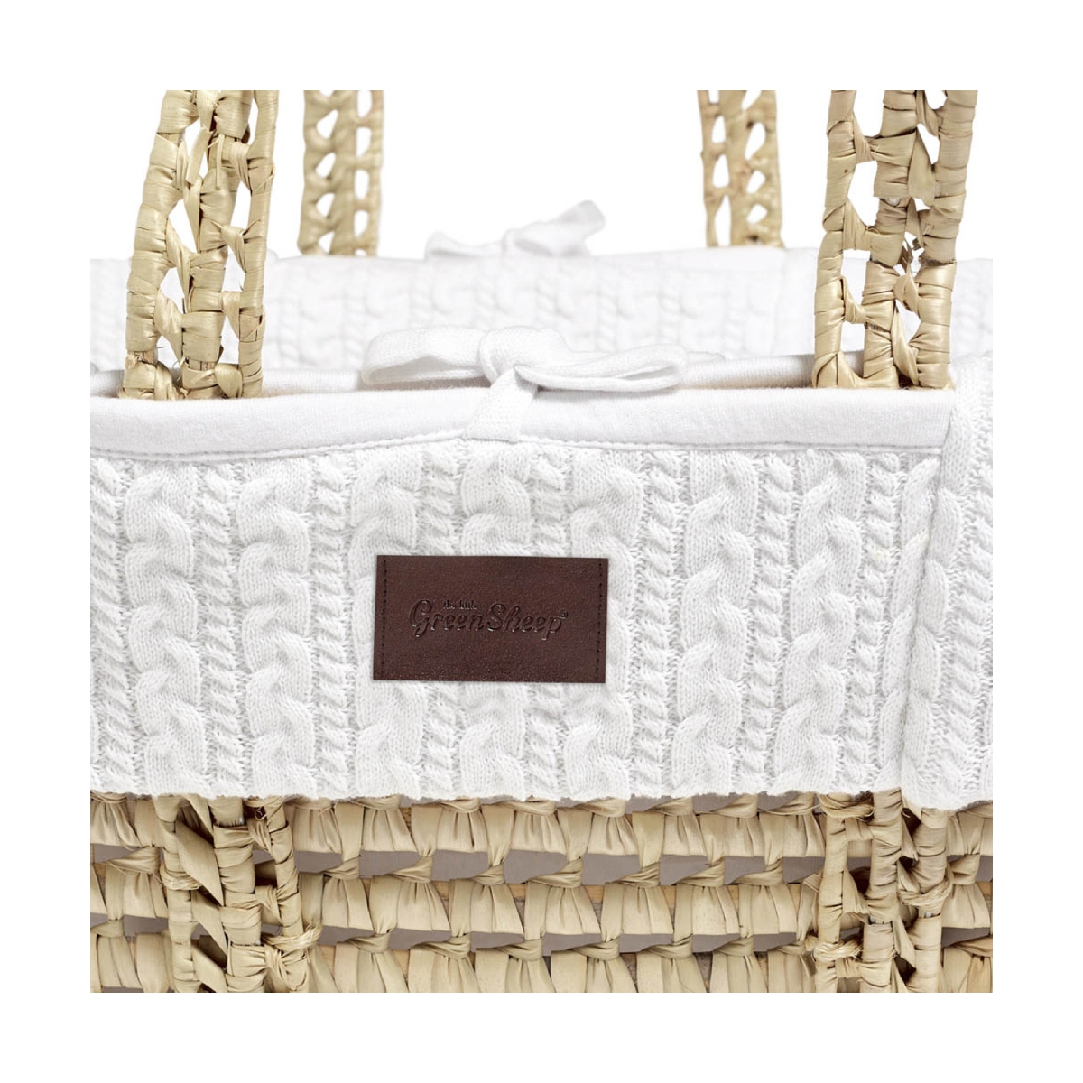 The Little Green Sheep Organic Knitted Moses Basket & Rocking Stand Bundle - White