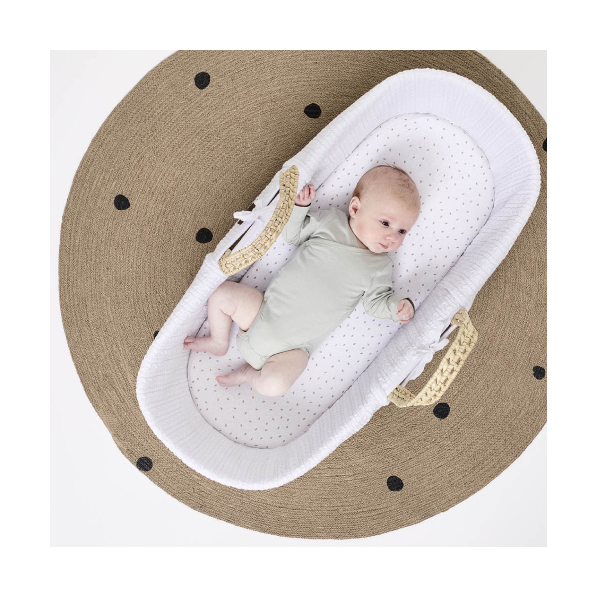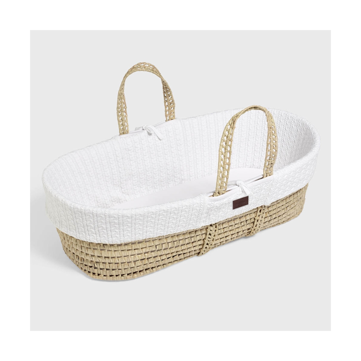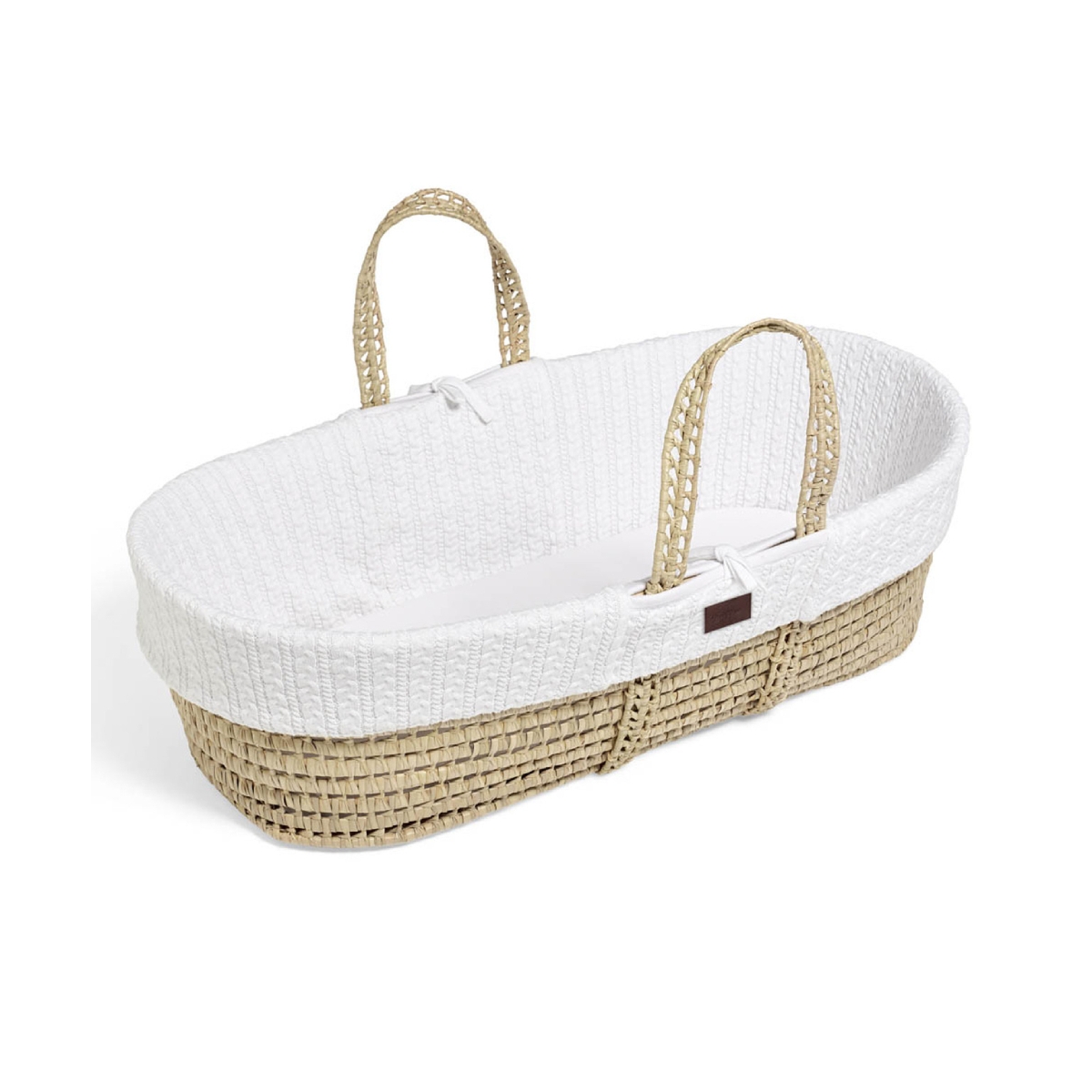 The basket itself boasts natural palm leaf and is perfectly lightweight for carrying round the home and a more resilient moses basket than other Maize baskets on the market. The organic cable knit liner is incredibly soft and breathable to promote healthy air circulation and ensure your little one is comfortable.
