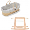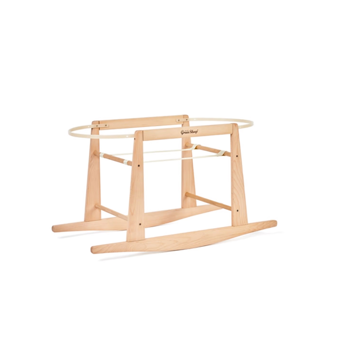Our Moses Basket Rocking Stand, in natural beech solid wood, is the perfect addition to any nursery. While your baby is settled in their Moses basket, you can rock them gently to sleep. Featuring wooden retaining bars that keep the Moses basket safe and secure.
