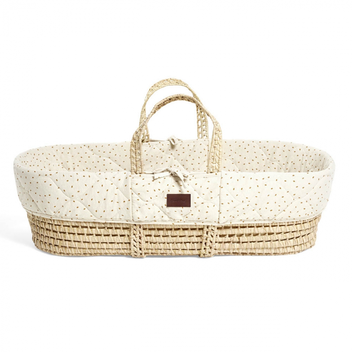 The basket itself boasts natural palm leaf and is perfectly lightweight for carrying round the home and a more resilient moses basket than other Maize baskets on the market. The organic quilted liner is incredibly soft and breathable to promote healthy air circulation and ensure your little one is comfortable.