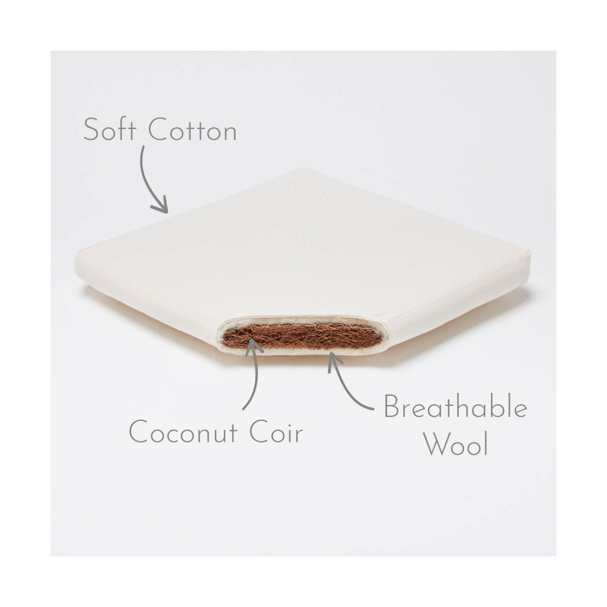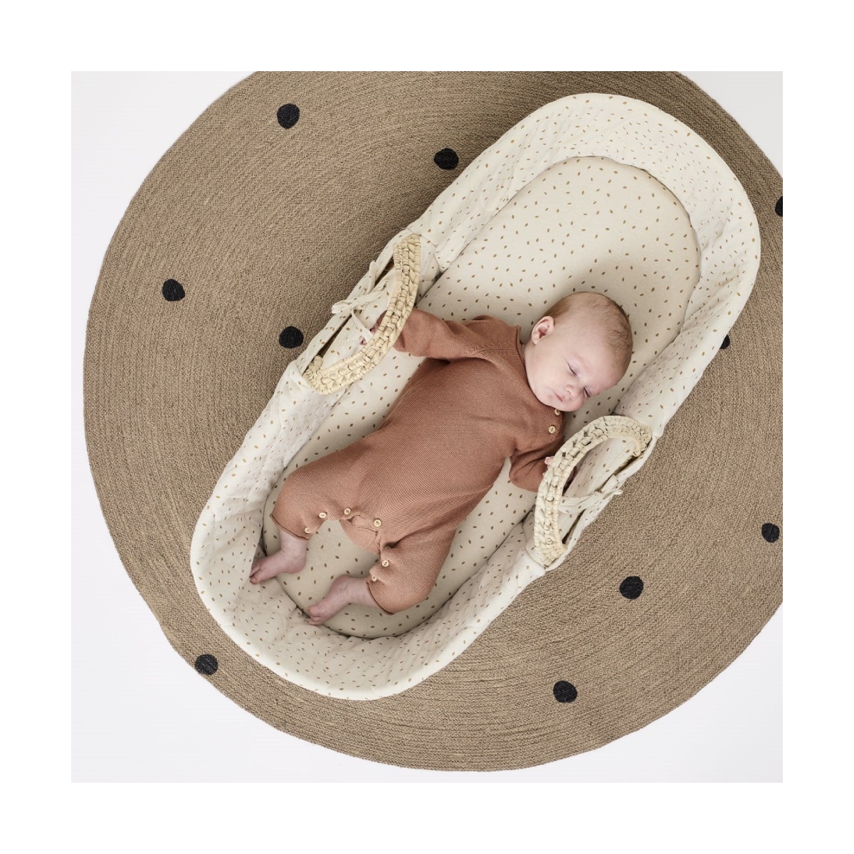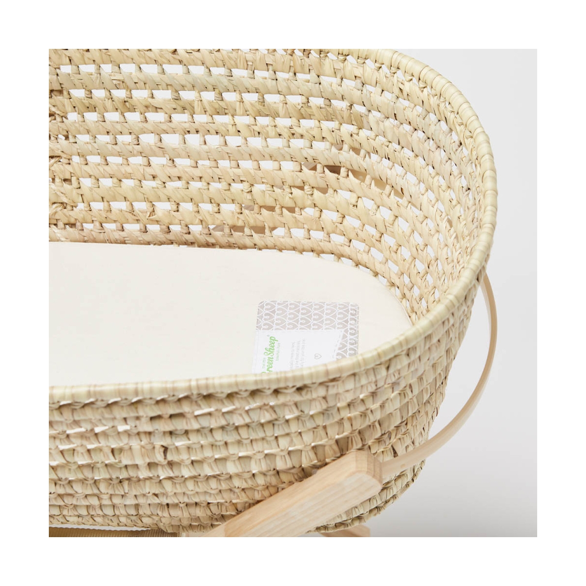 The basket itself boasts natural palm leaf and is perfectly lightweight for carrying round the home and a more resilient moses basket than other Maize baskets on the market. The organic quilted liner is incredibly soft and breathable to promote healthy air circulation and ensure your little one is comfortable.