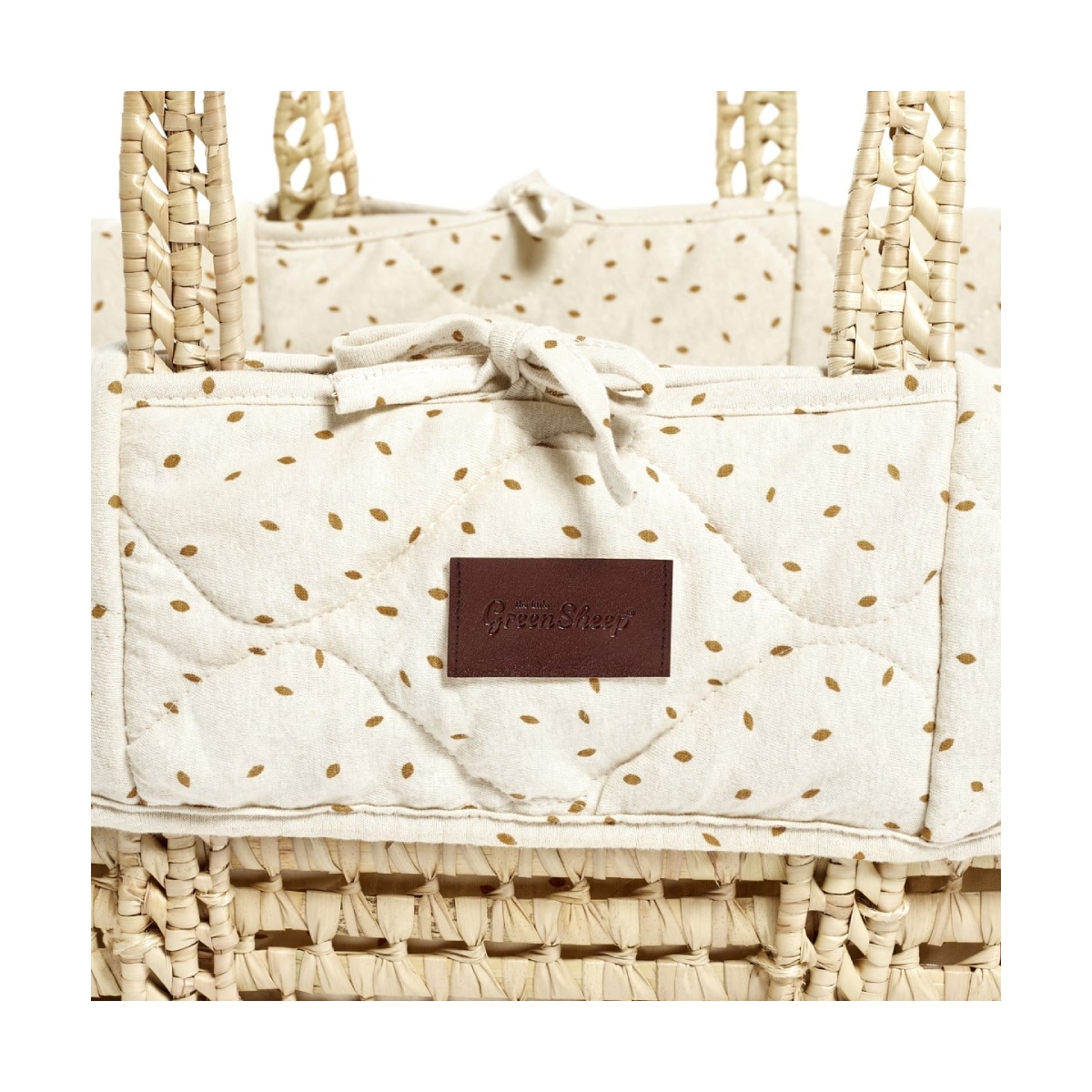 The Little Green Sheep Natural Quilted Moses Basket & Stand Bundle - Linen Rice/Walnut