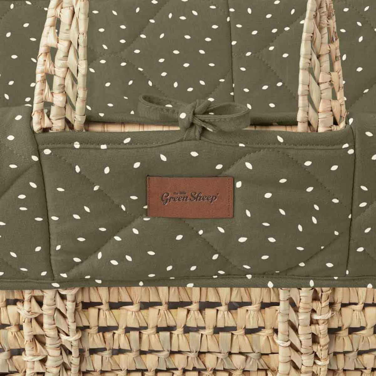 The Little Green Sheep Natural Quilted Moses Basket & Stand Bundle - Juniper Rice/Walnut