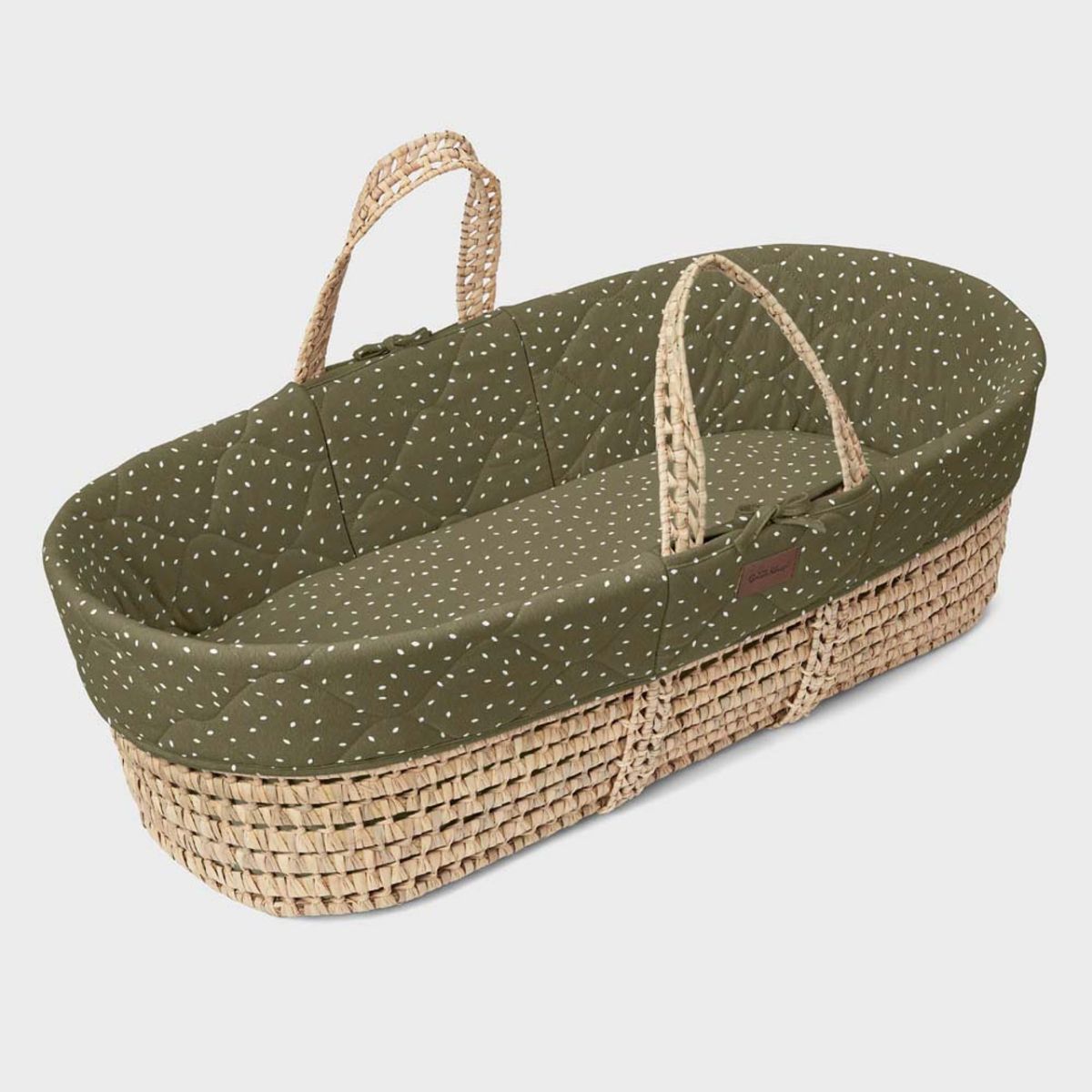 The Little Green Sheep Natural Quilted Moses Basket & Rocking Stand Bundle - Juniper Rice/Walnut