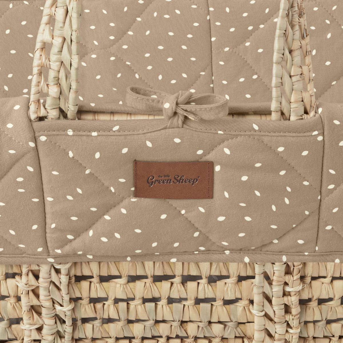 The Little Green Sheep Natural Quilted Moses Basket & Rocking Stand Bundle - Truffle Rice/Walnut