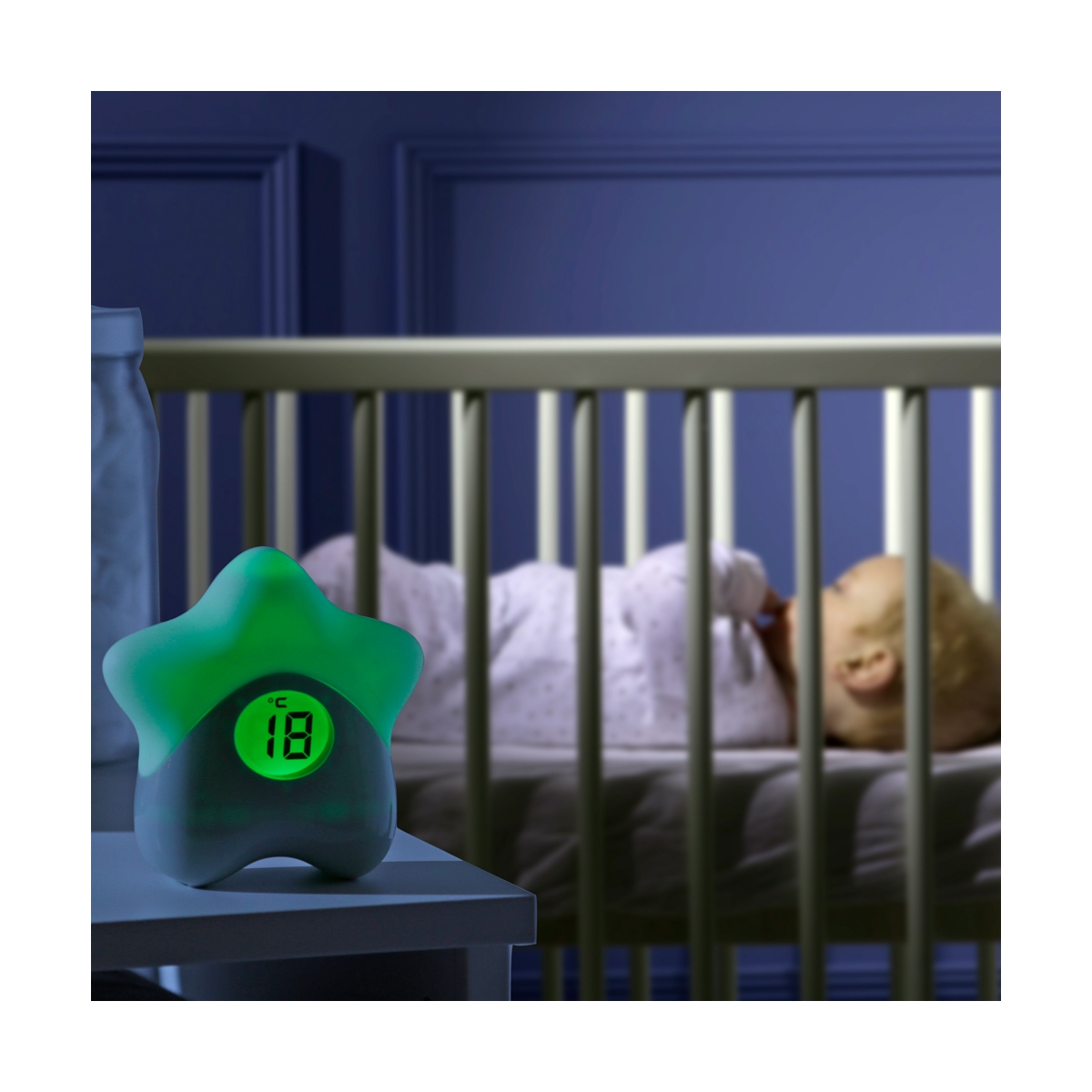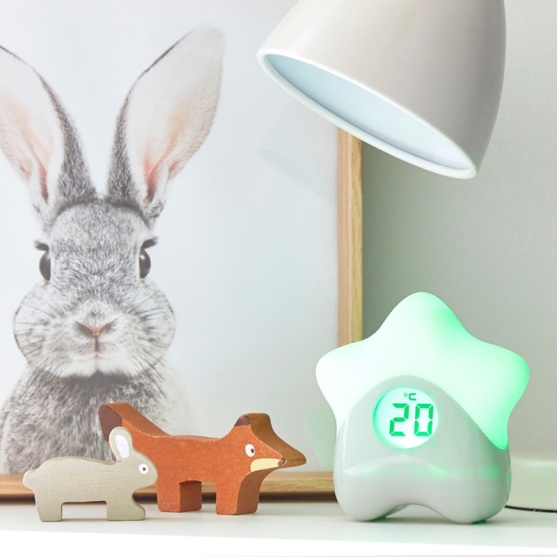 The Purflo Starlight Colour Change Thermometer is beautifully designed colour changing thermometer that helps you monitor the temperature of your precious little ones room. The colour changes from Blue for "cold", Green for "just right" and Red for "too hot". As it is powered by a lithium battery, you can take it with you anywhere.
