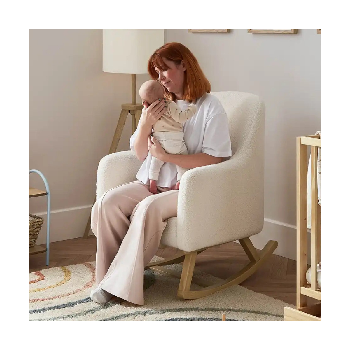 Calming Rocking Chair & Stool | With Borg Fleece Fabrics - The Roxby chair creates a calming rocking motion that will settle fussy little ones and provide the ideal space for a late-night feed. The soft borg fleece fabrics are sure to keep you cosy as you help your child drift off to sleep.