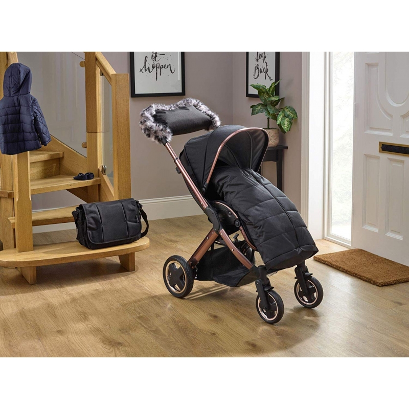 The water-resistant outer fabric means that you can rest assured that your hands will be protected against even the worst of the elements! Lined with a super cosy faux lambs wool, the mittens remain attached to your pram handle (using press studs) and you just pull your hands in and out to experience the warming comfort.