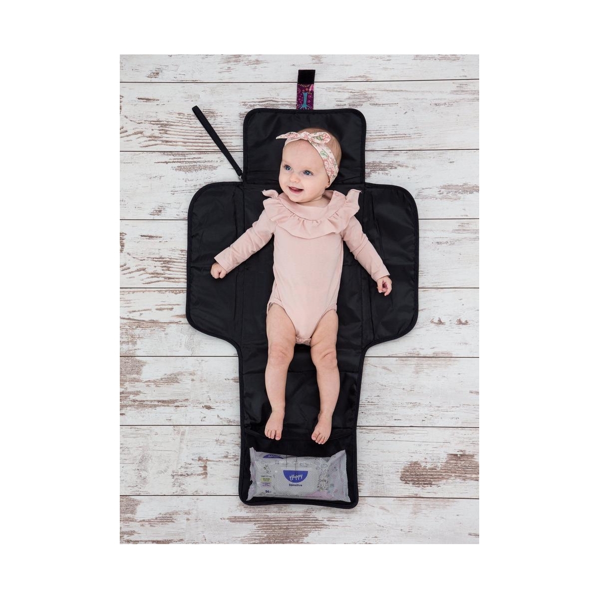 Simply unfold the nappy clutch, change station, using the Velcro strap, and hey presto you have a padded and wipe clean changing mat.