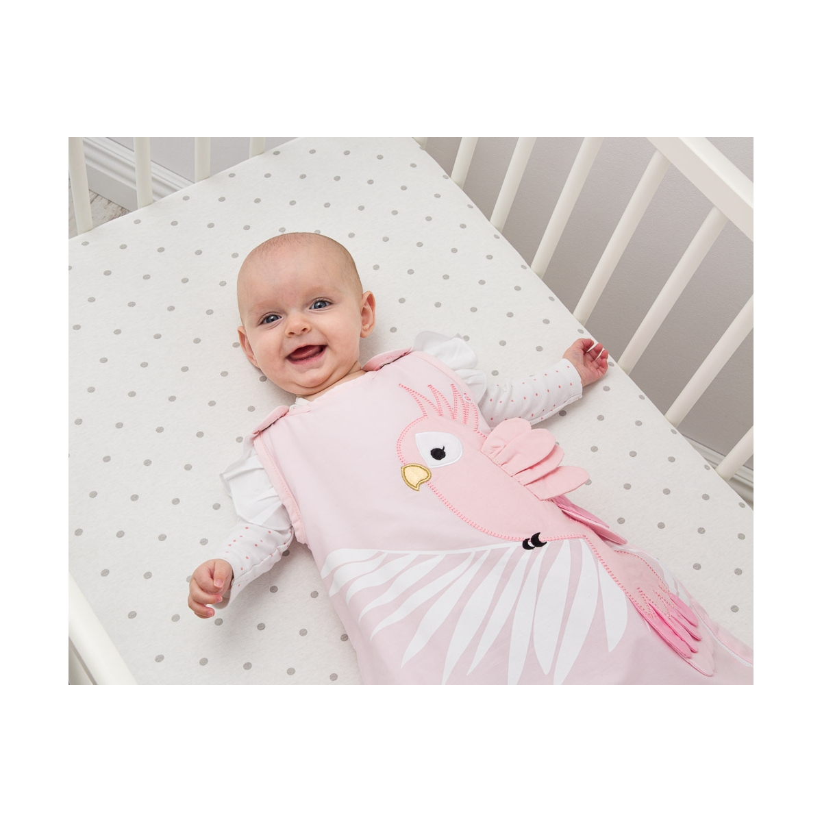 Pippa Parrot baby sleeping bag will keep baby warm and secure at night with its 2.5 tog thickness.