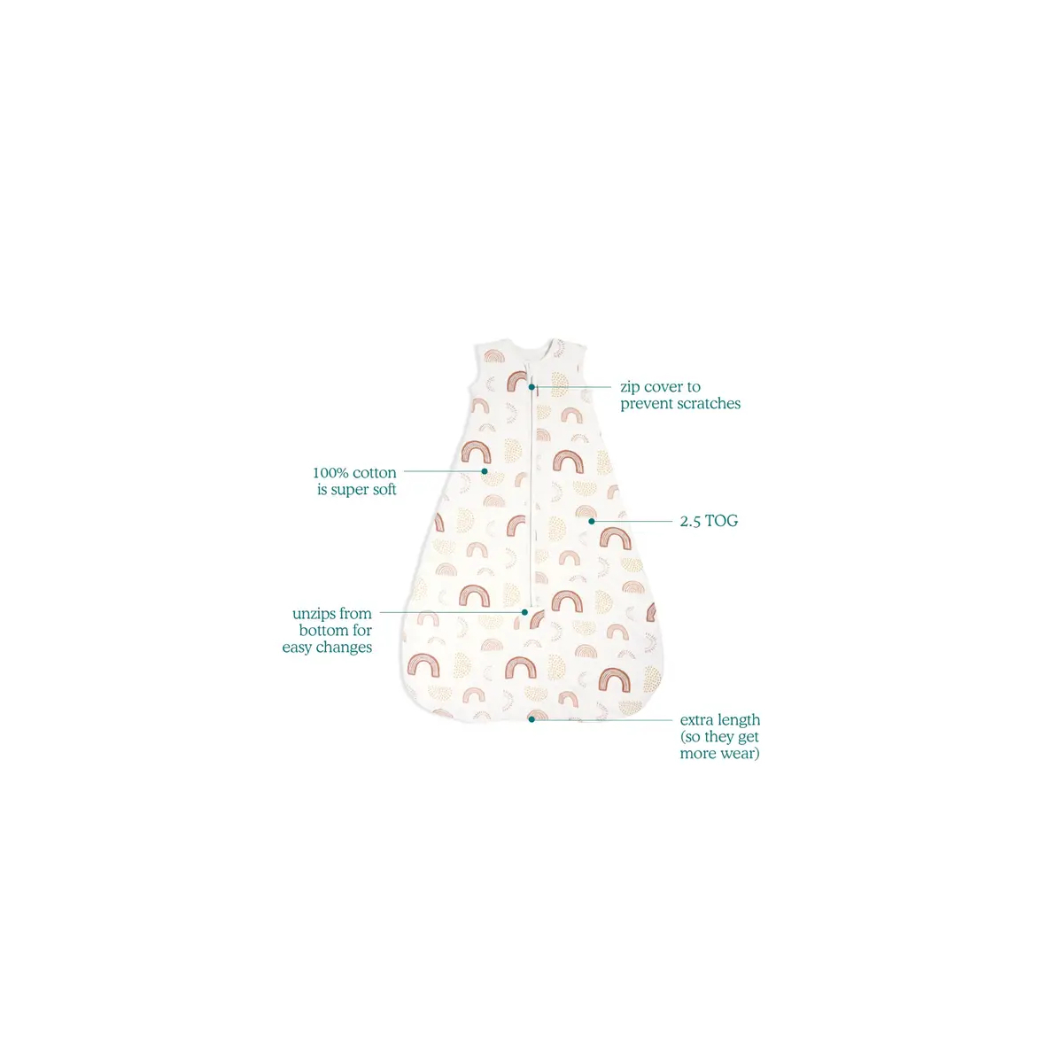 Our sleeping bag 2.5 TOG is ideal for nurseries with room temperatures between 16 and 20 degrees.