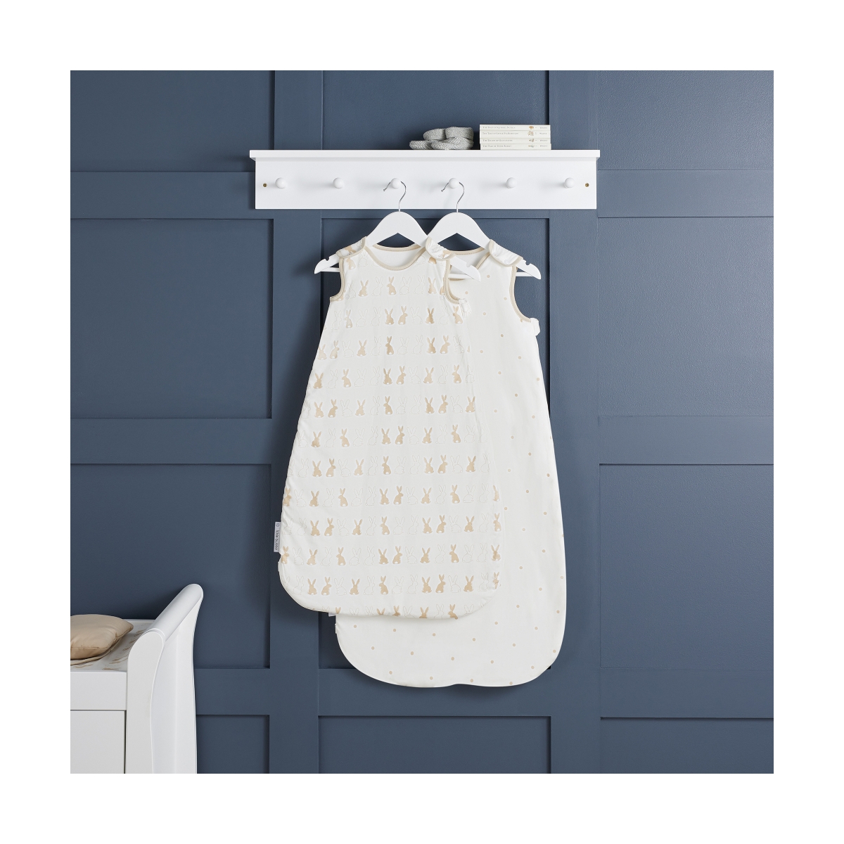 Our Sleep Bag is the perfect way to keep your little one cosy at night without the need for loose covers. Made with soft 100% jersey cotton, the Sleep Bag is sure to keep bubba warm and cosy on those cooler nights. The 2-way zipper and popper openings make it easy to get baby ready for bed, and get them out again. The 1.5 Tog keeps them warm and is perfect for layering up. The Sleep Bag also coordinates with pieces from our Bunnychino nursery collection.
