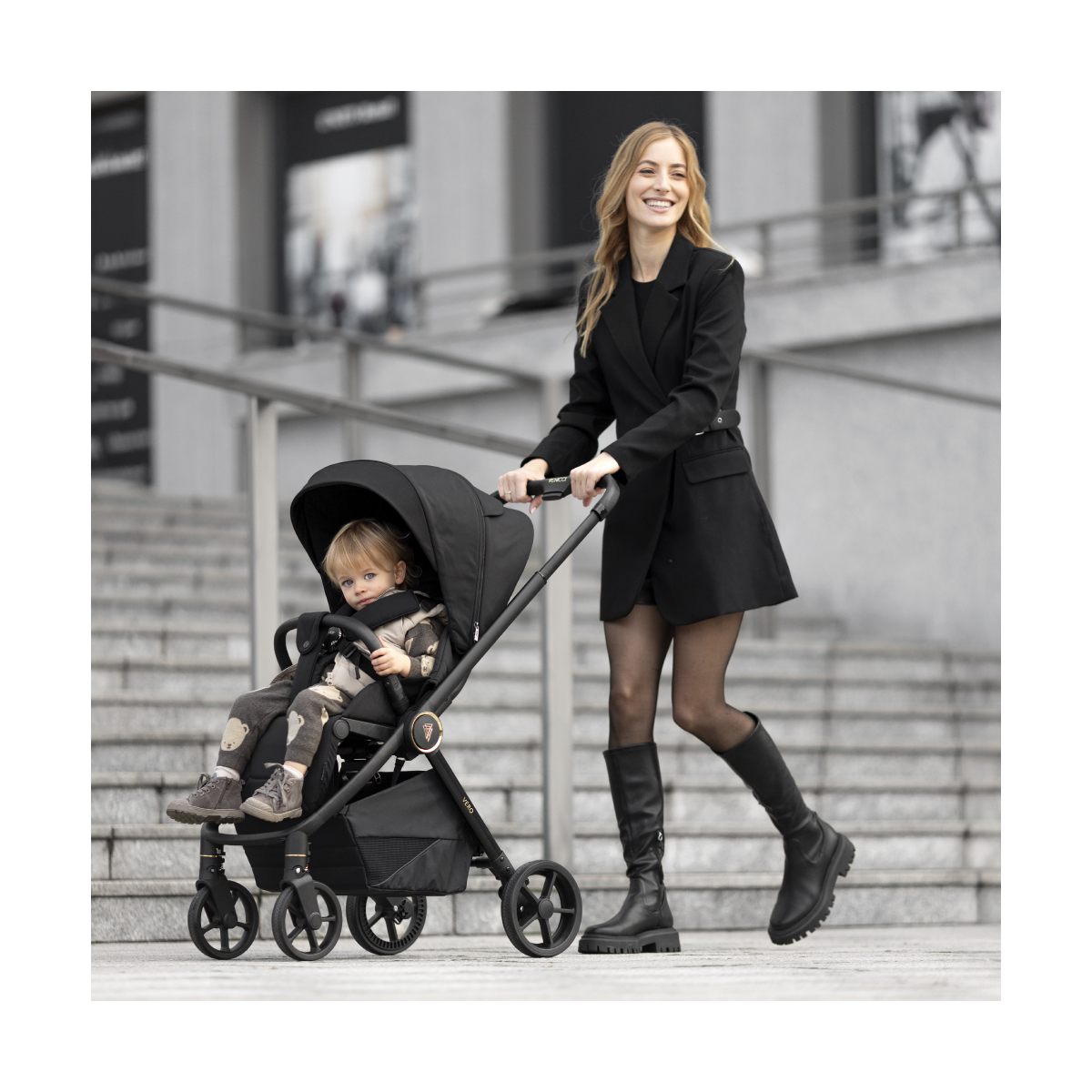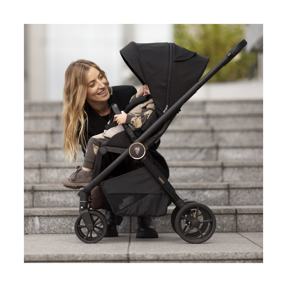 Venicci Vero is an all-terrain stroller. We paid great attention to the suspension system, which is truly refined - there is a dedicated suspension on each of the four wheels. The stroller also offers excellent riding comfort, thanks to its solid, puncture-free wheels. Their size is slightly larger than in traditional strollers, ensuring a smoother ride for your little one.