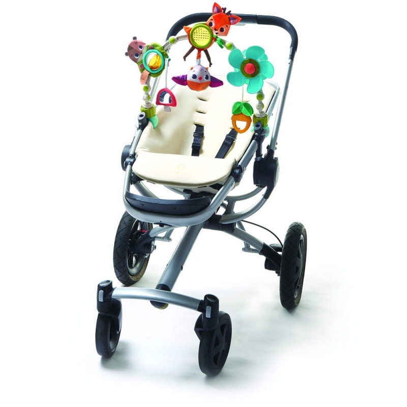 Keep baby entertained while out and about this fun stroller arch including 7 baby-activated toys while helping the development of babies and encouraging their fine motor skills. Attaching easily to pushchair the arch has two stages of development; sensory exploration (0m+) and cause & effect learning (5m+). The flexible arch easily adjusts to fit baby's age and playing preferences while the electronic bird toy plays 4 different tunes and can be activated by baby.