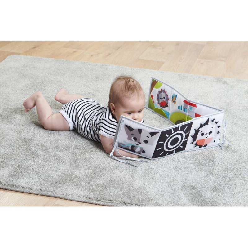 Cute dual-stage illustrations book that stimulates vision and encourages tummy-time.