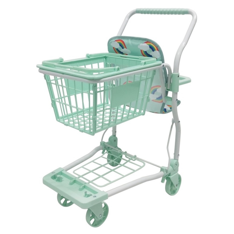 The Rupert shopping trolley offers a beautiful rainbow print with a white frame finish, available in both mint and primrose.