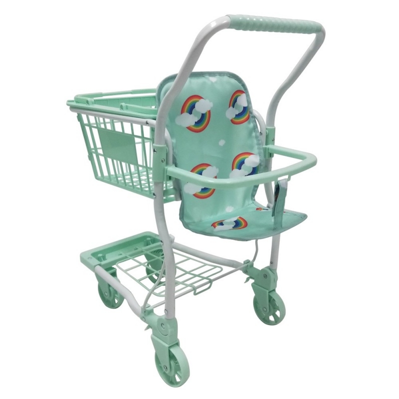 Includes: Trolley frame, removable shopping basket, underneath shopping tray, 4 wheels and seat for Dolly or Teddy to go shopping.