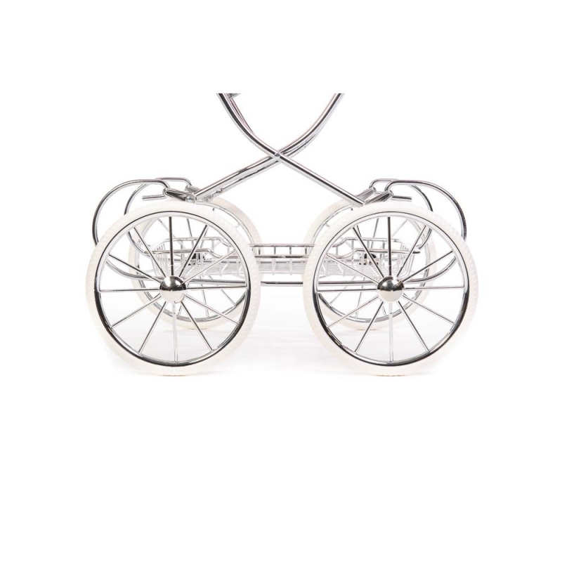 This stunning classic looking pram has a Spanish twist with beautiful flutted ribbon trim. The flower rosettes are removable and the Annie comes with inner carry cot hood nets and a mattress as standard.