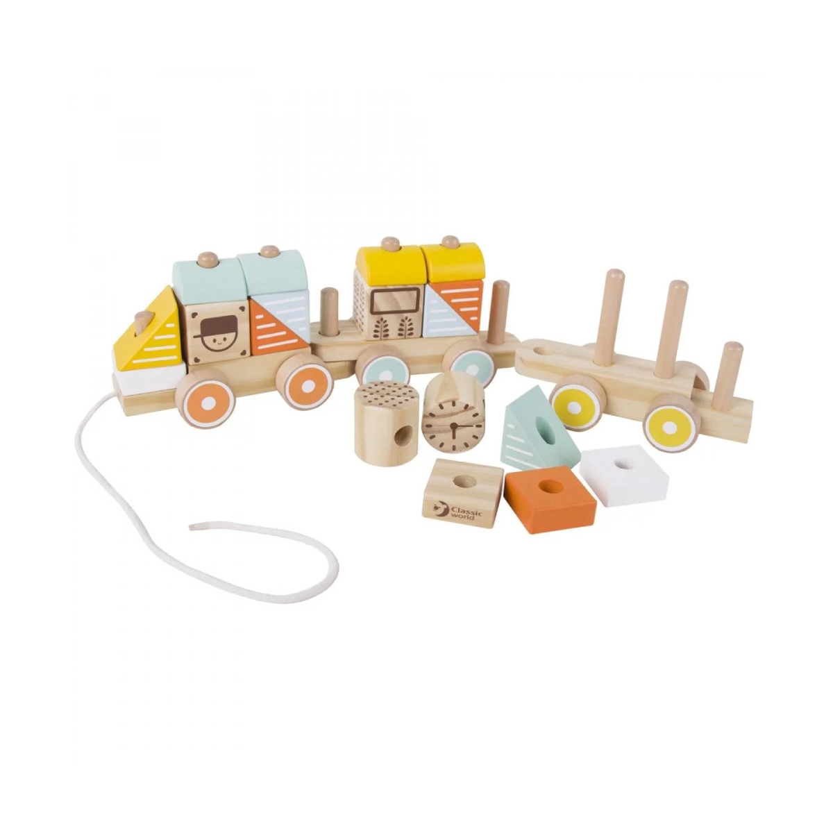 Encourage walking and help enhance creativity with this pull train that your toddler can re-design as much as their hearts desire. Re-stack all of the different shapes onto the train’s carriages stimulating creativity and then slot the carriages together enhancing fine motor skills. Your little one can then pull the train on behind them as they walk. This is the perfect toy to encourage toddlers who are just getting up onto their feet.