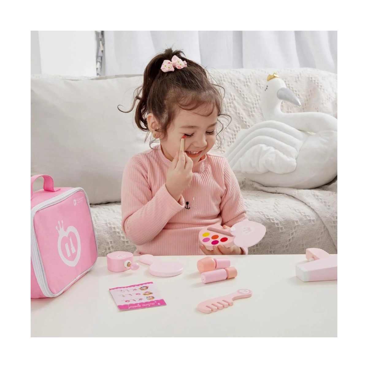 Made from environmentally friendly teakwood, all materials and colours are non-toxic and free of preservative chemicals. Children love copying their parents and this set allows them to do that without creating a mess.