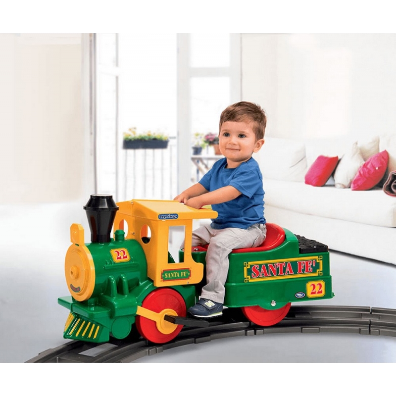 Little ones will love being the conductor on their very own train! perfect for 2 - 3 year olds, the Santa fe train is powered by a 6-volt rechargeable battery and can travel up to 1 ½ mph. It comes with 12 curved track pieces, but can be used on carpet or smooth surfaces.