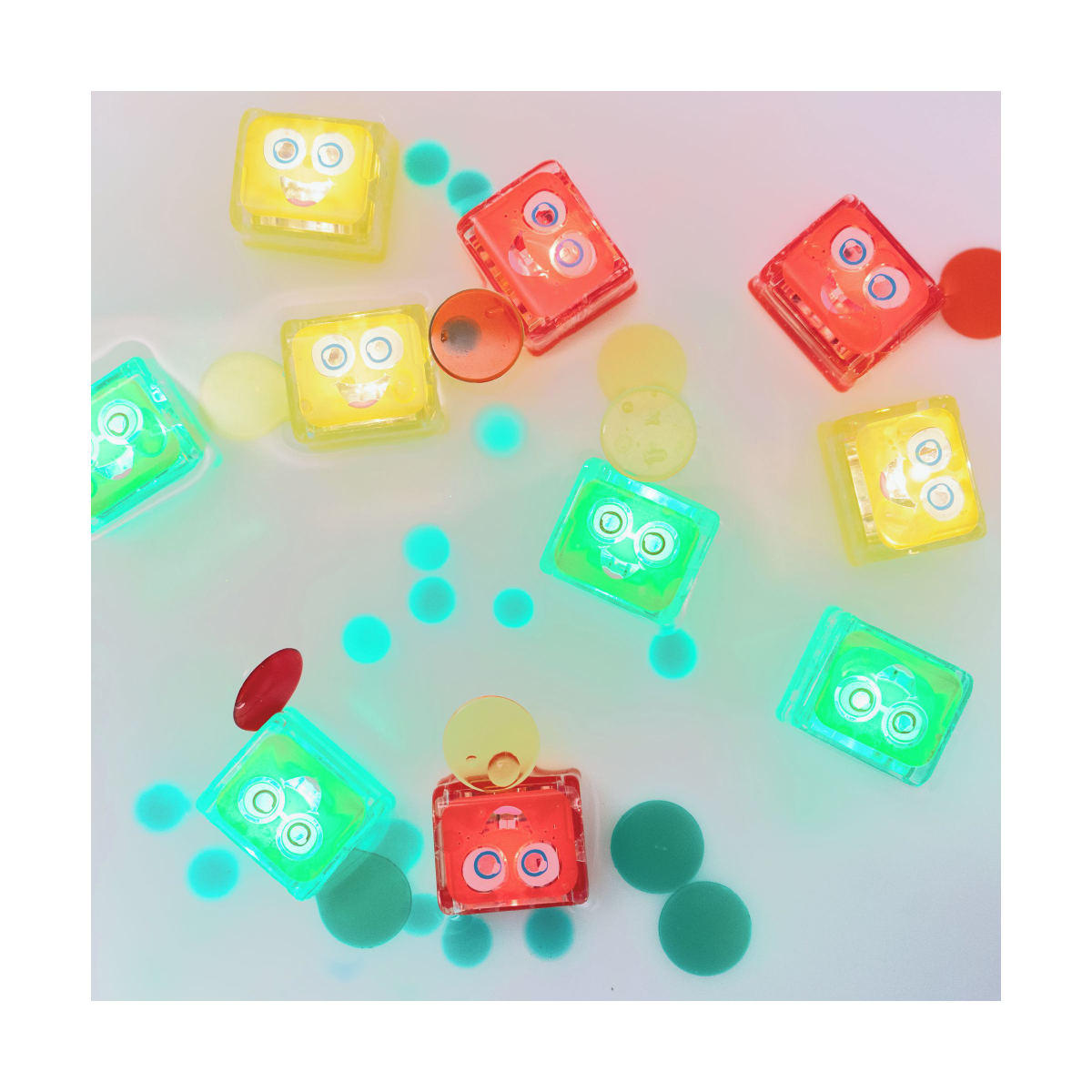 Enhance your water play with this set of 4 colourful light up cubes. Featuring cute faces each cube emits a glowing light upon contact with water making these ideal to pop in the bath for a calming, sensory experience, or to add some fun to your water-based playtime! Each pack contains four colourful cubes, which can be used with a Glo Pal character (sold separately) or on their own as they float around with their happy smiling faces. The lights will stop glowing once removed from the water however for the best use simply give them a quick wipe dry to preserve the battery for next time. Suitable for 3 years plus.