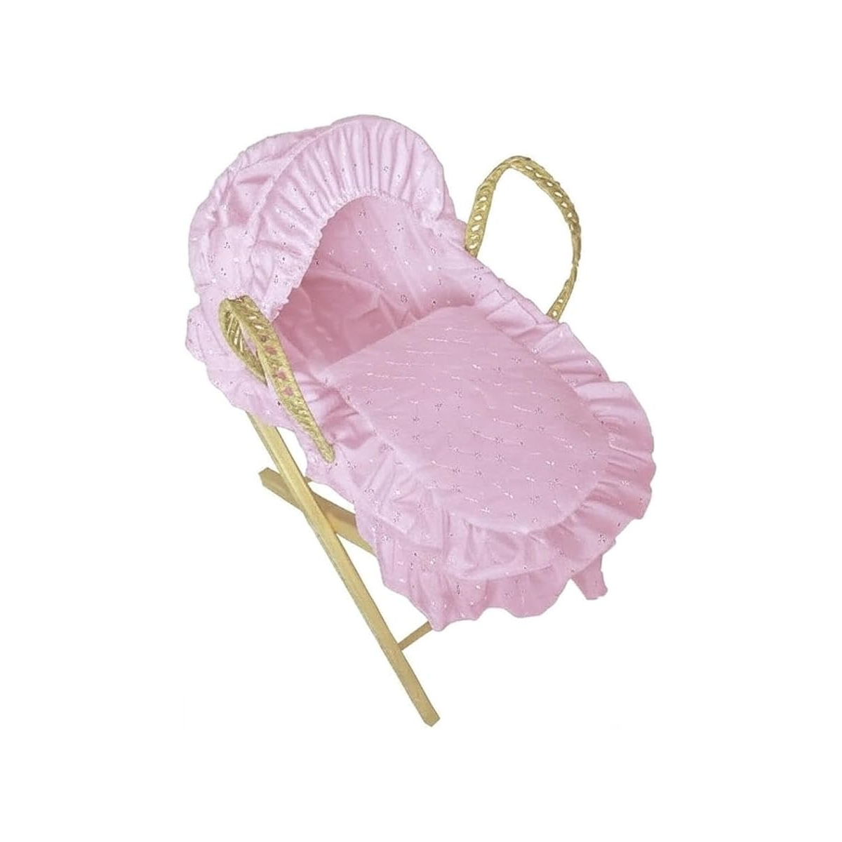 Kiddies Kingdom Dolls Moses Basket With Stand - Broderie Anglaise PinkWarning: Last items in stock!
