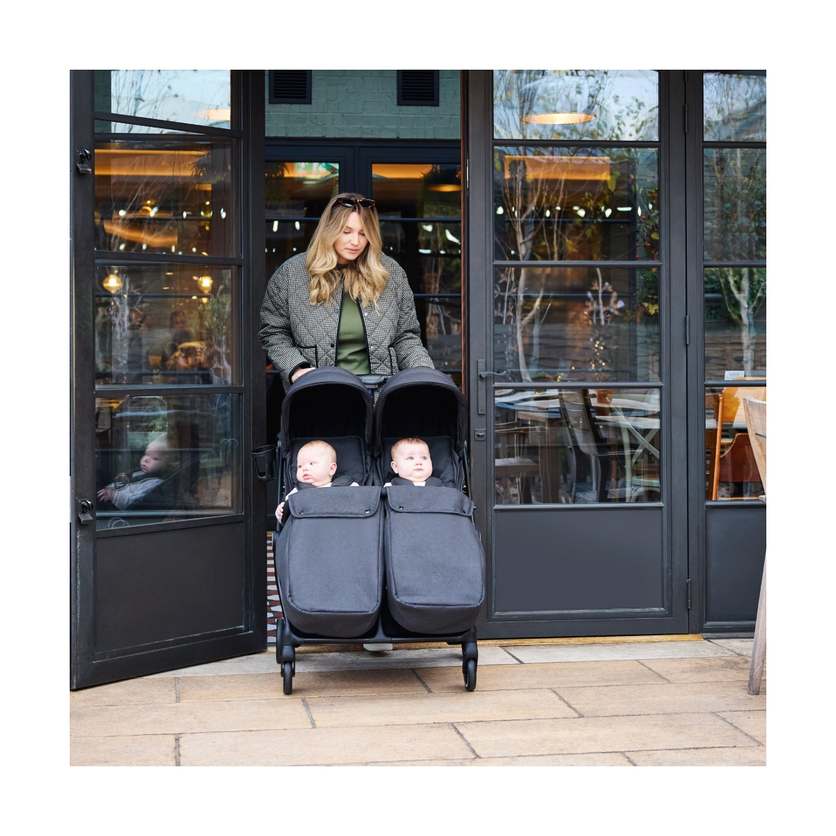 Whether it’s a quick trip or a longer stroll, the Aries Double makes getting out with two feel simple. With adjustable leg rests and reclining seats, ventilated hoods, and pop-out sun visors, it’s built for comfort in every season. The roomy basket and handy storage pockets keep all your essentials close, while the compact fold fits neatly into your home or car.