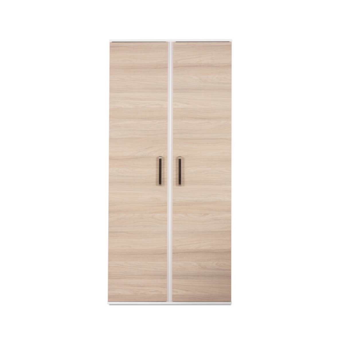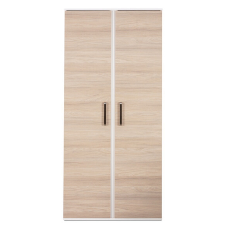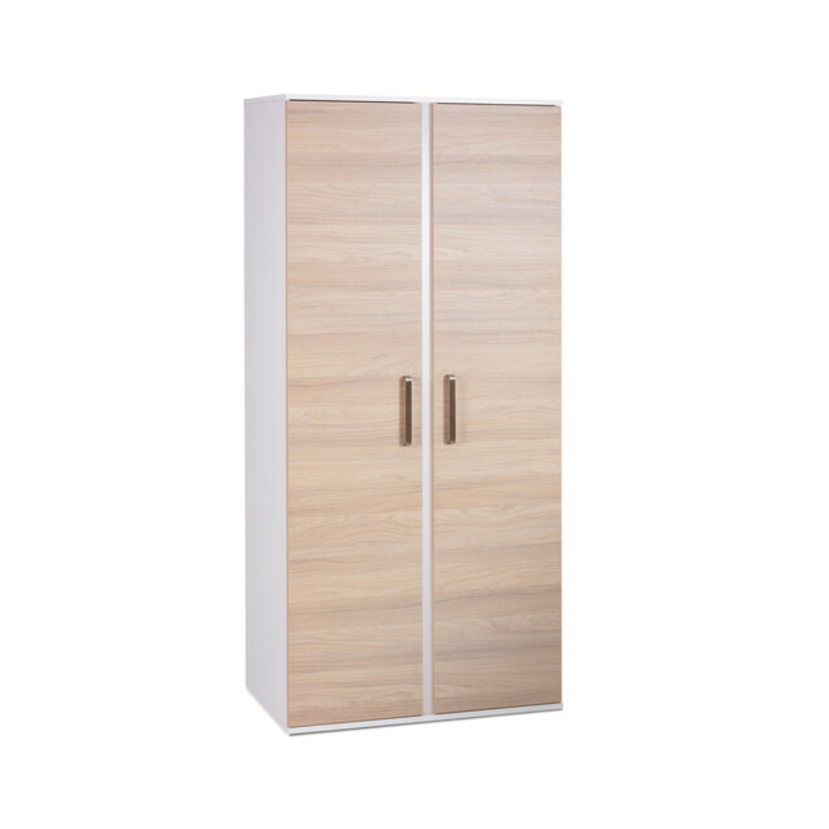 The Silver Cross Finchley full-size, two-door wardrobe comes with twin handing rails and shelves for ample storage. Finished in satin white and Nordic oak veneer with brushed satin chrome handles, it creates a beautiful but practical nursery.