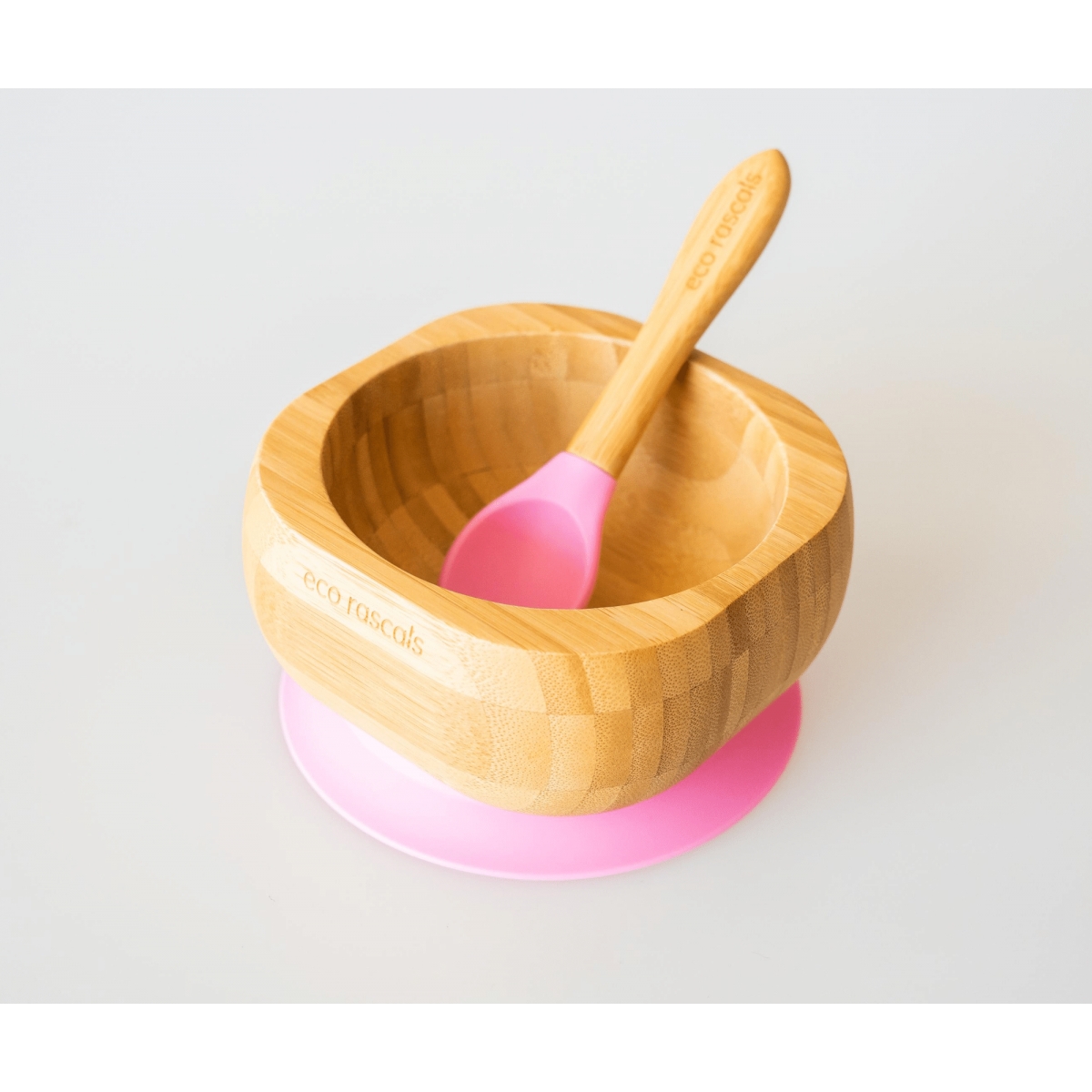 eco rascals Bamboo Suction Bowl & Spoon Set-PinkWarning: Last items in stock!
